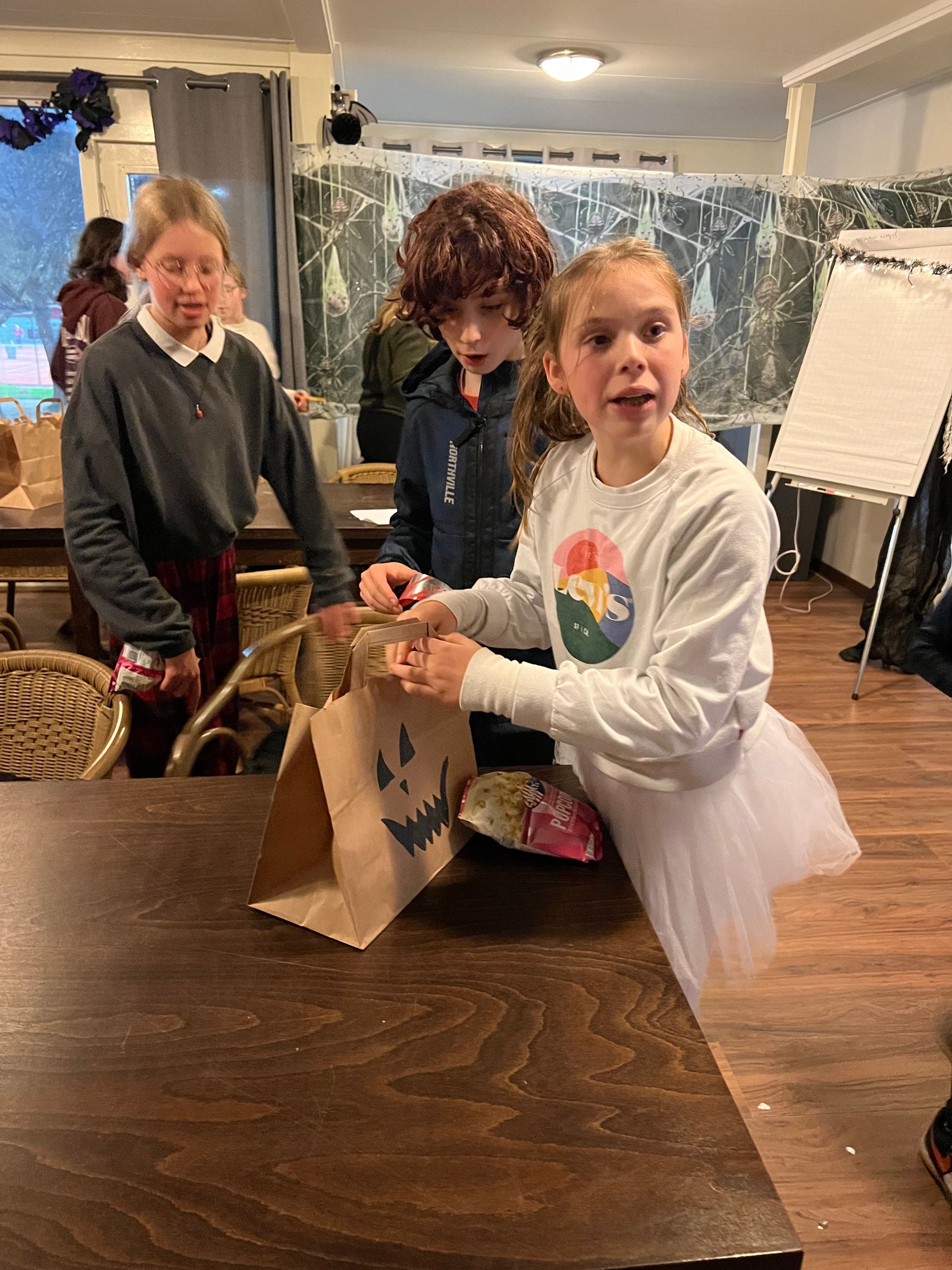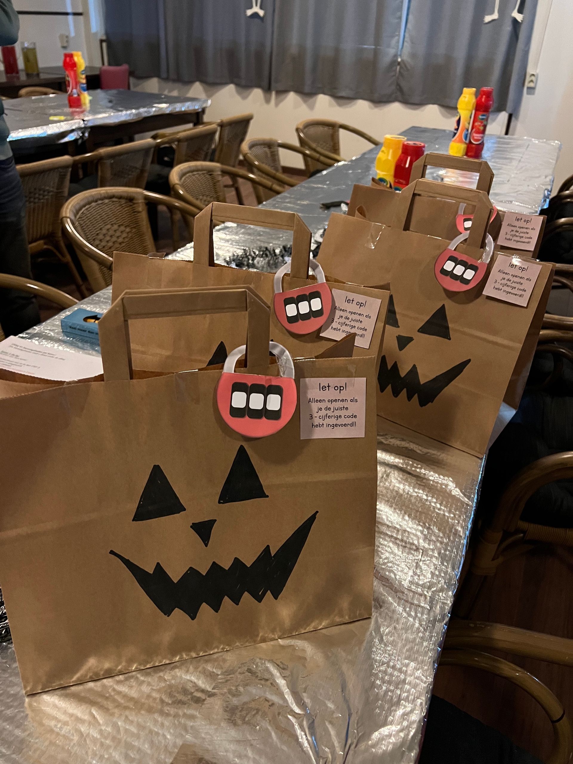 De spanning steeg toen de jonge avonturiers zich waagden aan de Escape Room met het thema 'Het verlaten huis'. Puzzels, raadsels en rekensommen moesten worden opgelost om de code te kraken en de buit uit de halloweenzakken te halen. Nog meer snoep wachtte op hen als beloning voor hun slimheid en teamwork.