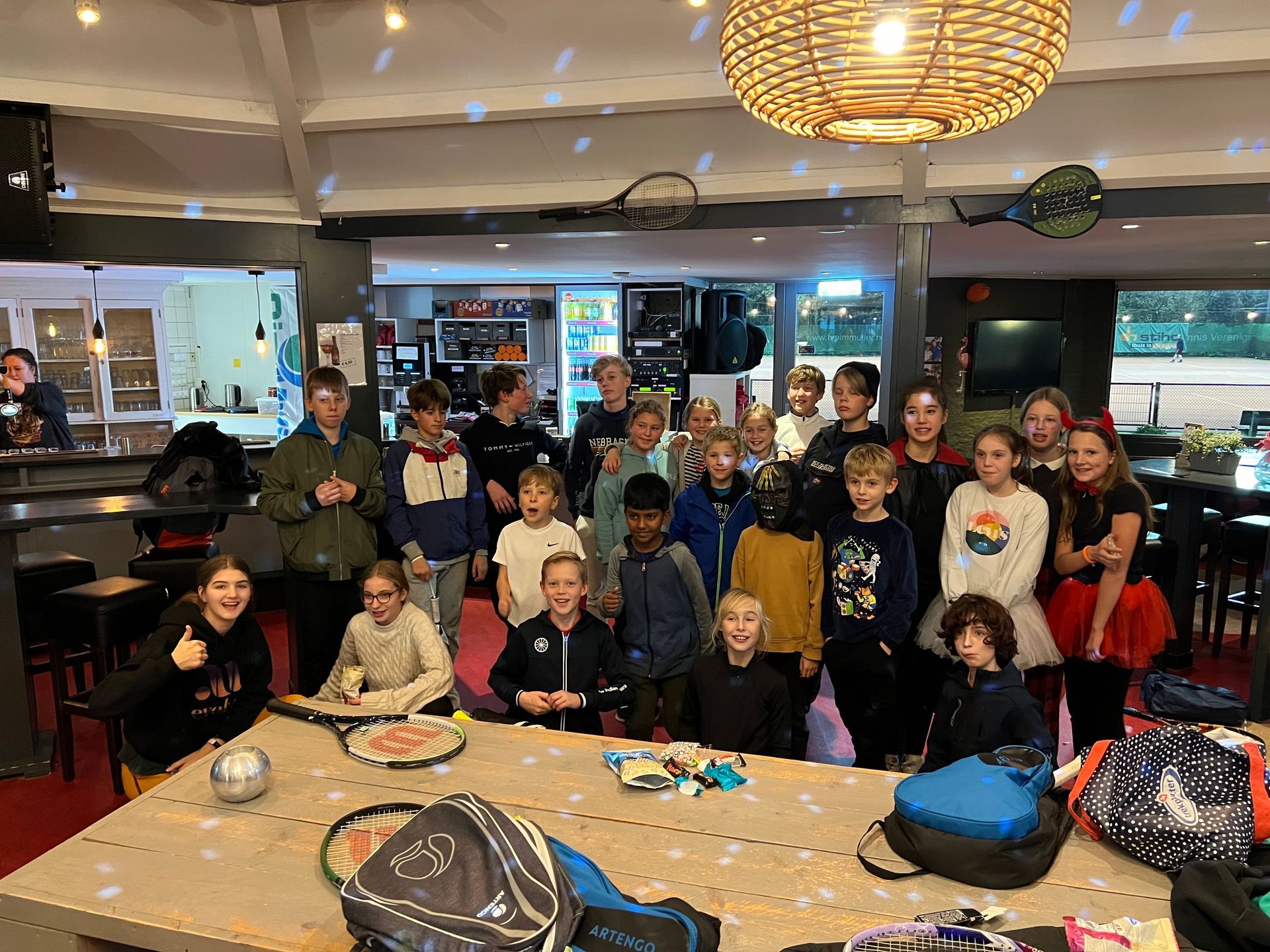 De tennis- en padelbanen werden omgetoverd tot een waar ‘trick or treat’ snoepwalhalla, want naast de sportieve activiteiten stonden er ook spellen op het programma die zorgden voor een grote snoepbuit. De kids, waarvan een aantal verkleed als gevaarlijke duiveltjes, gedroegen zich als ware engeltjes. Allen werkten in teams, samen om de banen te veroveren en om de zoete beloningen te verzamelen.